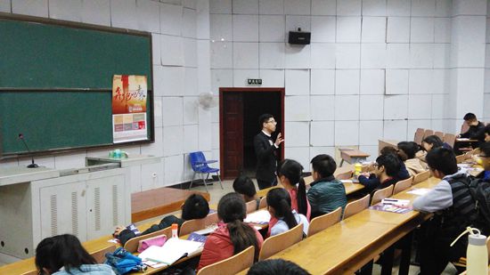 2015年11月12日晚7点,龙席电商电商咨询事业部总经理陈涛应邀在我校阳光校区07-T302作了一场题为“正青春”的专题讲座。伟德国际1946源于英国杜进、何国正老师、毕业班辅导员程鹏和近300名学生参加了本次讲座。