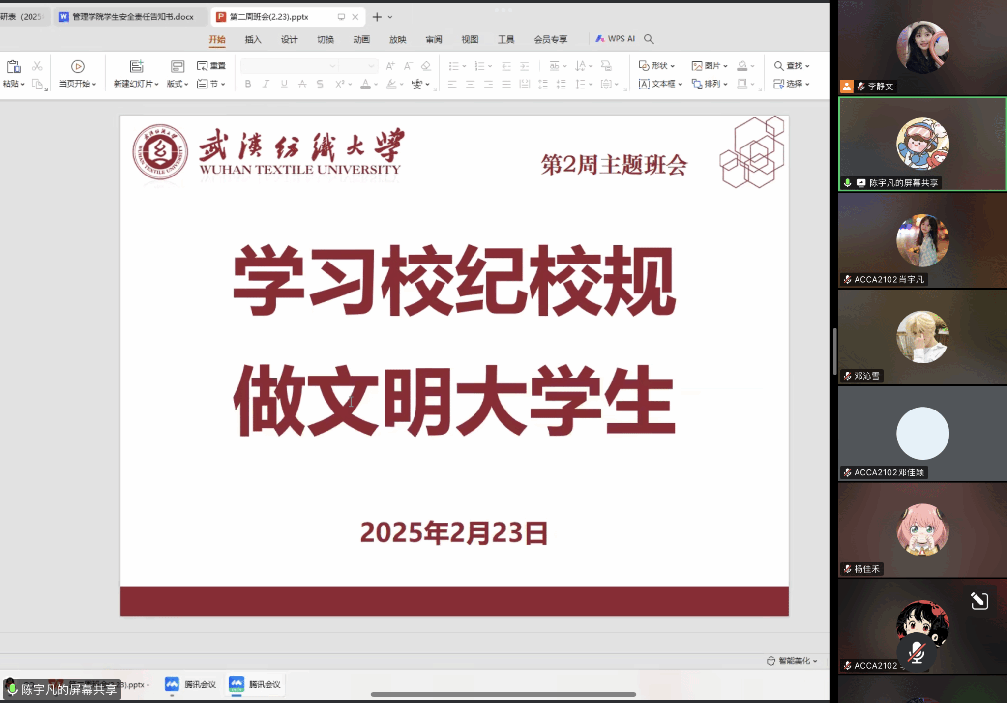 2024级各班主任组织学生召开“学习校纪校规,做文明大学生”主题班会,围绕《伟德国际1946源于英国本科生考勤及请假管理办法》、《学生违纪处分办法》、《学生申诉处理办法》和《本科生勤工助学管理办法》等文件展开学习,详细解读了考勤制度、请假流程、违纪行为及处分、申诉程序以及勤工助学政策等内容,激励大家争做新时代优秀大学生,遵循校纪校规,绽放美好年华。