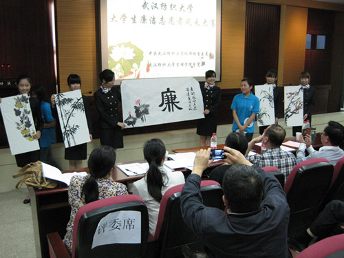 以古为例,列古人刚正风气,显廉洁之风;以莲为喻,列其出淤泥而不染,独立而高洁,诠廉洁之释。本次比赛不仅张显了大学生廉洁志愿者的风采,更是廉洁文化进校园活动入脑入心的体现。