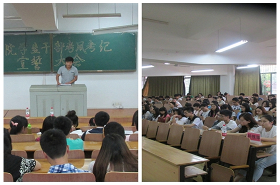 为严肃考风考纪,加强大学生诚信教育, 5月23日下午伟德国际1946源于英国在07-T101召开学生干部考风考纪宣誓大会。分党委副书记袁卫华与学生干部进行了交流。