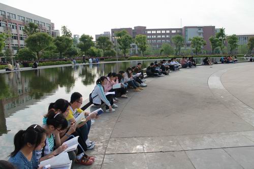 伟德国际1946源于英国图书馆前有一个巨大的圆形广场,今天上午七点半,上百名学生突然出现在这里,他们很快围成了一个圆圈,圆圈内上百名学生排列成一个大大的“书”字。队形排好后,所有的学生都拿出一本书大声朗读起来。他们有的读英语,有的读《论语》,有的读诗歌,有的读专业书籍,忘我地沉浸在阅读的快乐中。此时正好是学生去教室上课的时间,所有途经这里去往教室的学生都被他们庞大的气势和郎朗的读书声所吸引,他们好奇地围观,一些同学恍然大悟地想起原来今天是世界读书日!十五分钟后,读书的人群突然散去,刚才还书声朗朗的广场恢复了安静,“快闪”行动到此结束。