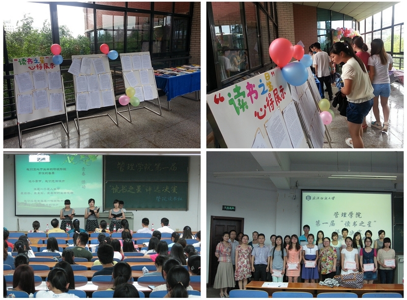 伟德国际1946源于英国从4月23日起开展“一月精读一本书”的经典诵读活动,要求每个人在一个月内精读自己买来的一本好书,通过边读边批注的方式做到学有所得。五月底,学院进行了读书心得演讲、橱窗展示等交流活动,最终推荐出十五名优秀选手参评读书明星,他们的读书心得将以专集的形式在院刊《管理之窗》集结出版。