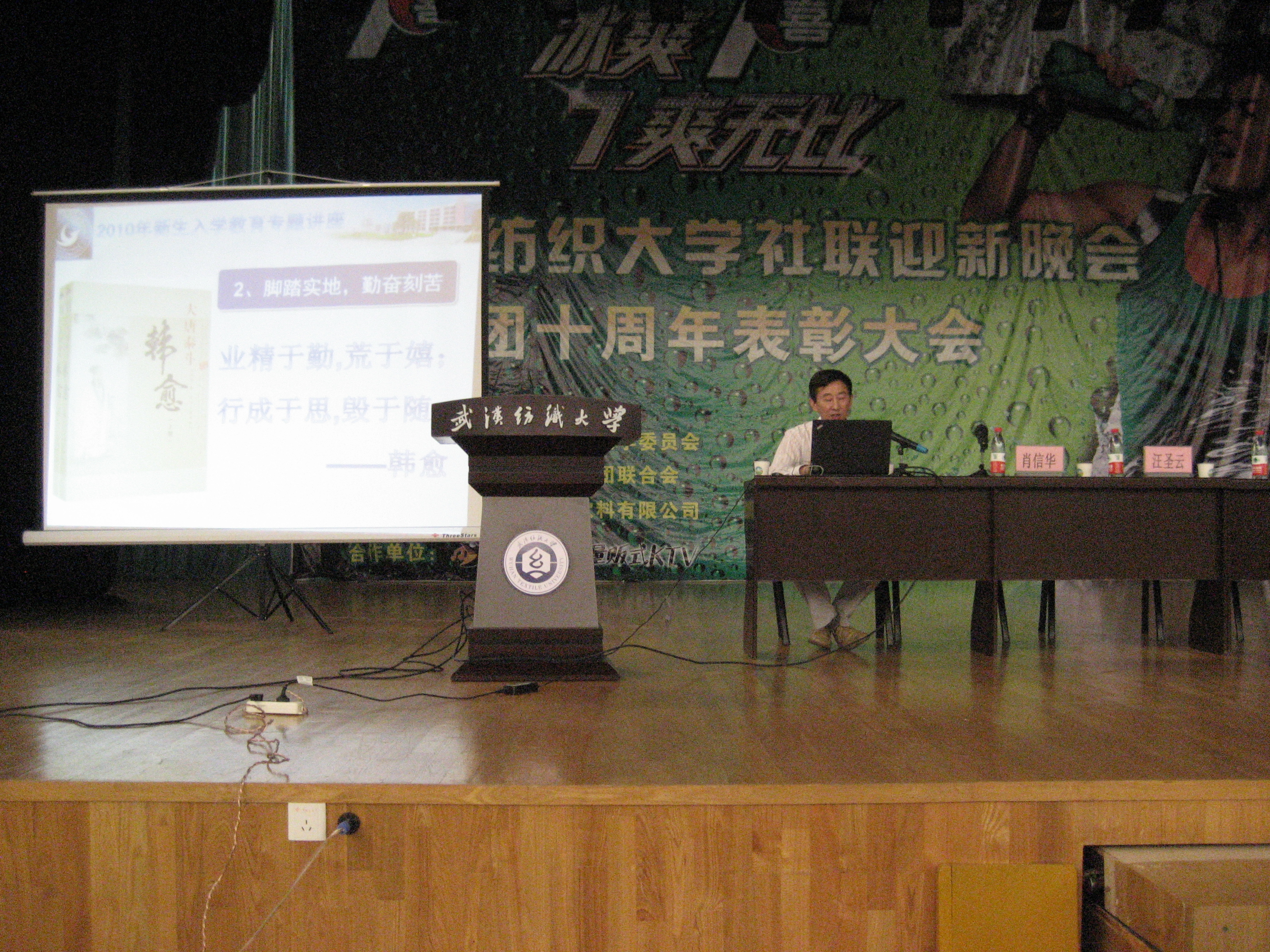 典礼结束后,分党委书记汪圣云给全体新生做了《树立远大理想,立志成人成才》的主题讲座,开启了学院“青春领航”系列讲座第一讲。汪书记从“心中要有理想,确立远大而又现实的理想,努力实现理想”等三个方面宏观地诠释了“什么是理想、为什么要有理想及怎样实现理想”等问题,勉励新生要注重学习,有一个长远的规划。最后,汪书记给全体新生提出了“坚忍不拔,锲而不舍,脚踏实地,勤奋刻苦,博学多识,厚积薄发”二十四字要求,并用诗人流沙河的诗歌《理想》结束了报告。