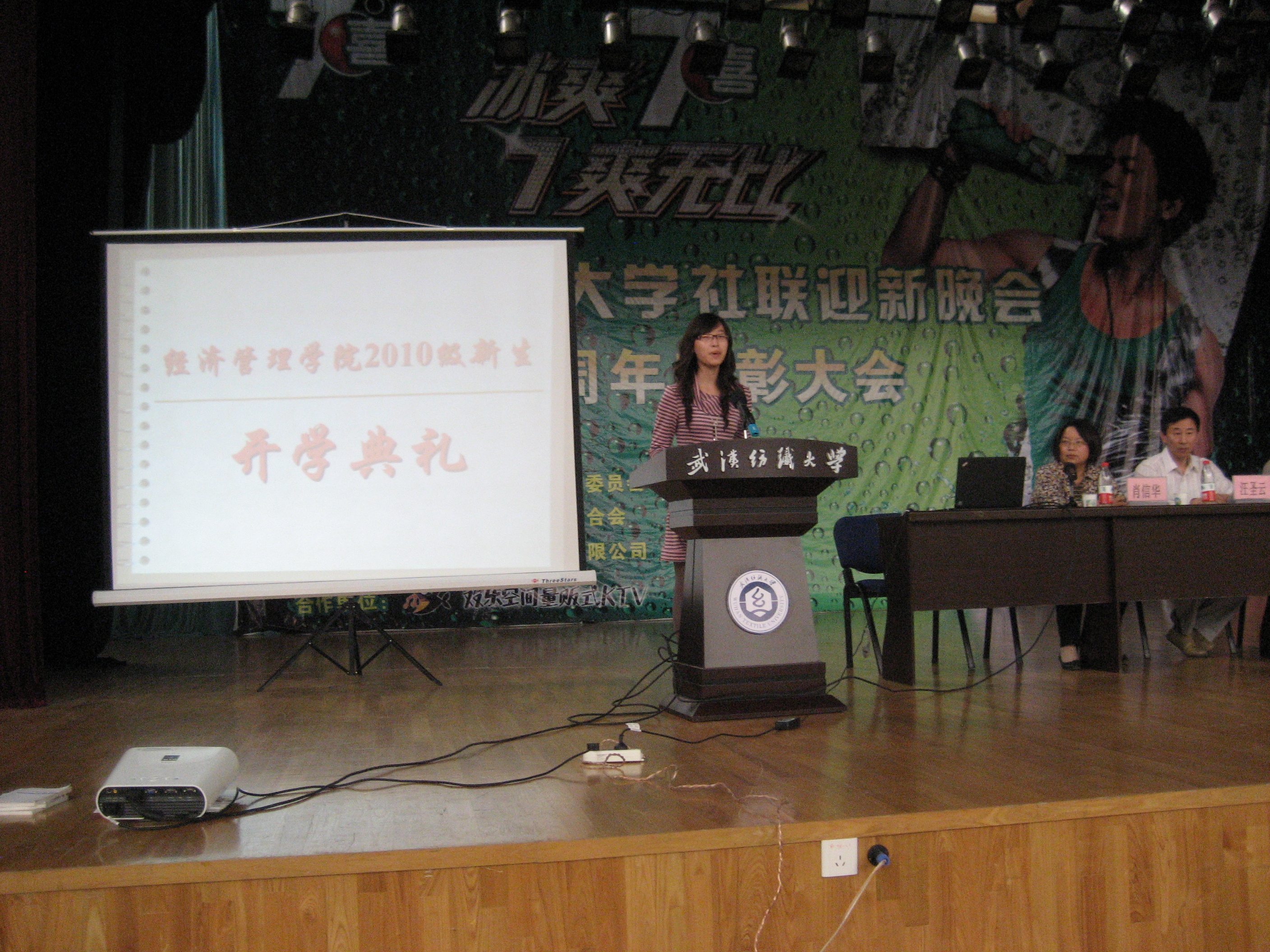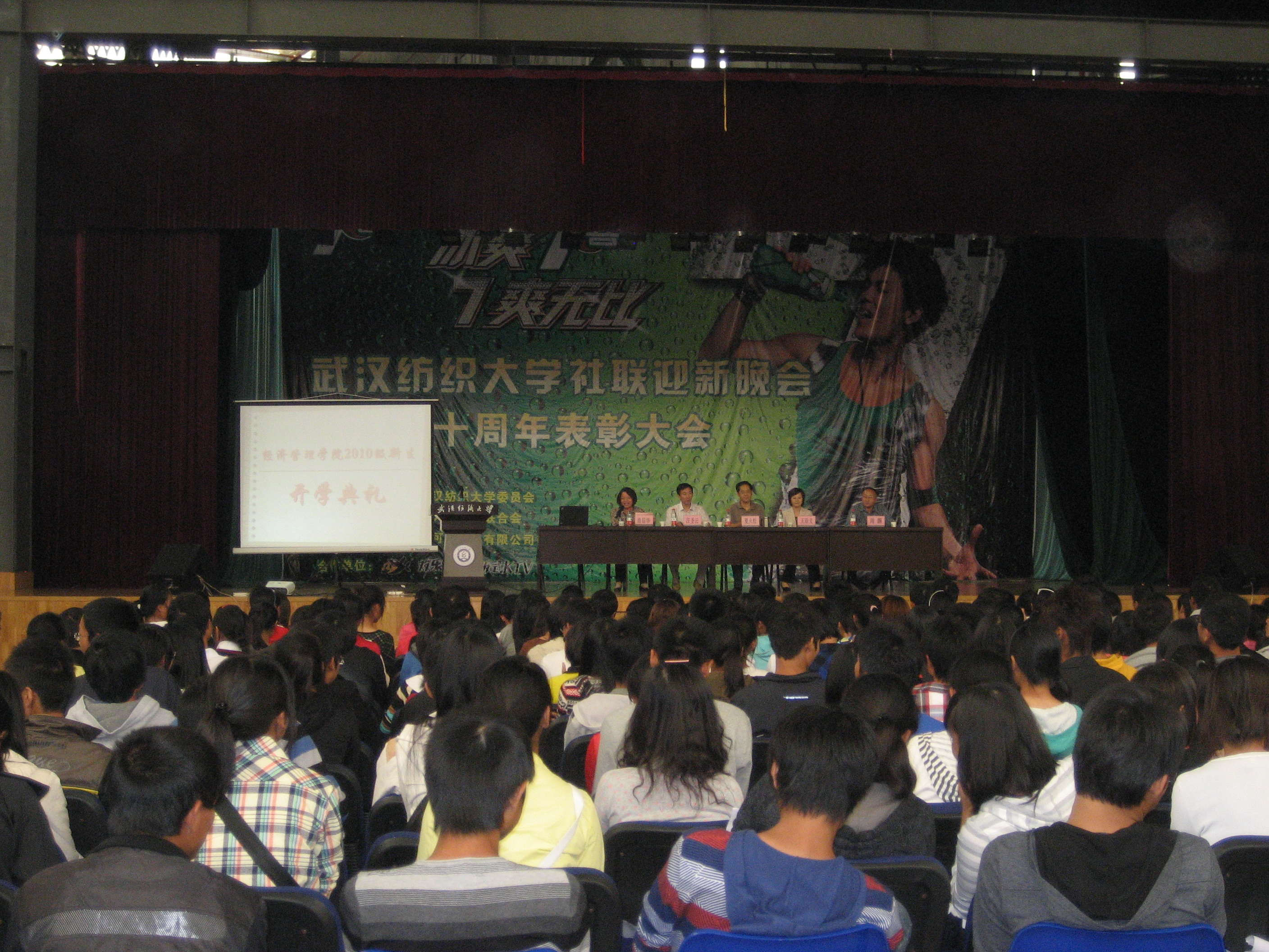 9月24日下午2:00,经济伟德国际1946源于英国2010级新生开学典礼暨青春领航系列讲座第一讲在阳光校区大学生活动中心演播厅隆重举行。学院院长夏火松、分党委书记汪圣云、分党委副书记肖信华、副院长王珍义和教师代表周灏等出席了典礼。全体辅导员、党员学长和新生参加了典礼。
