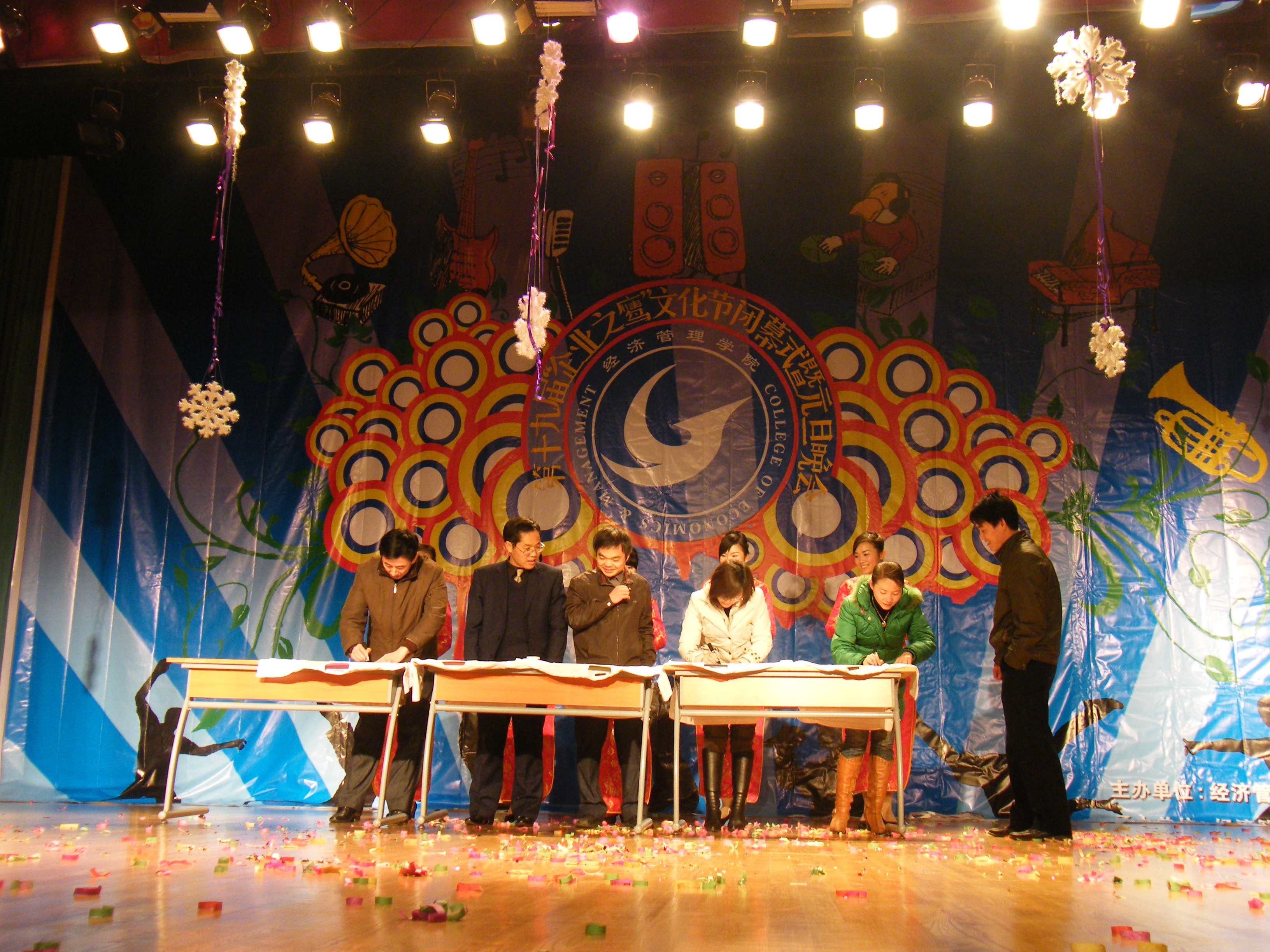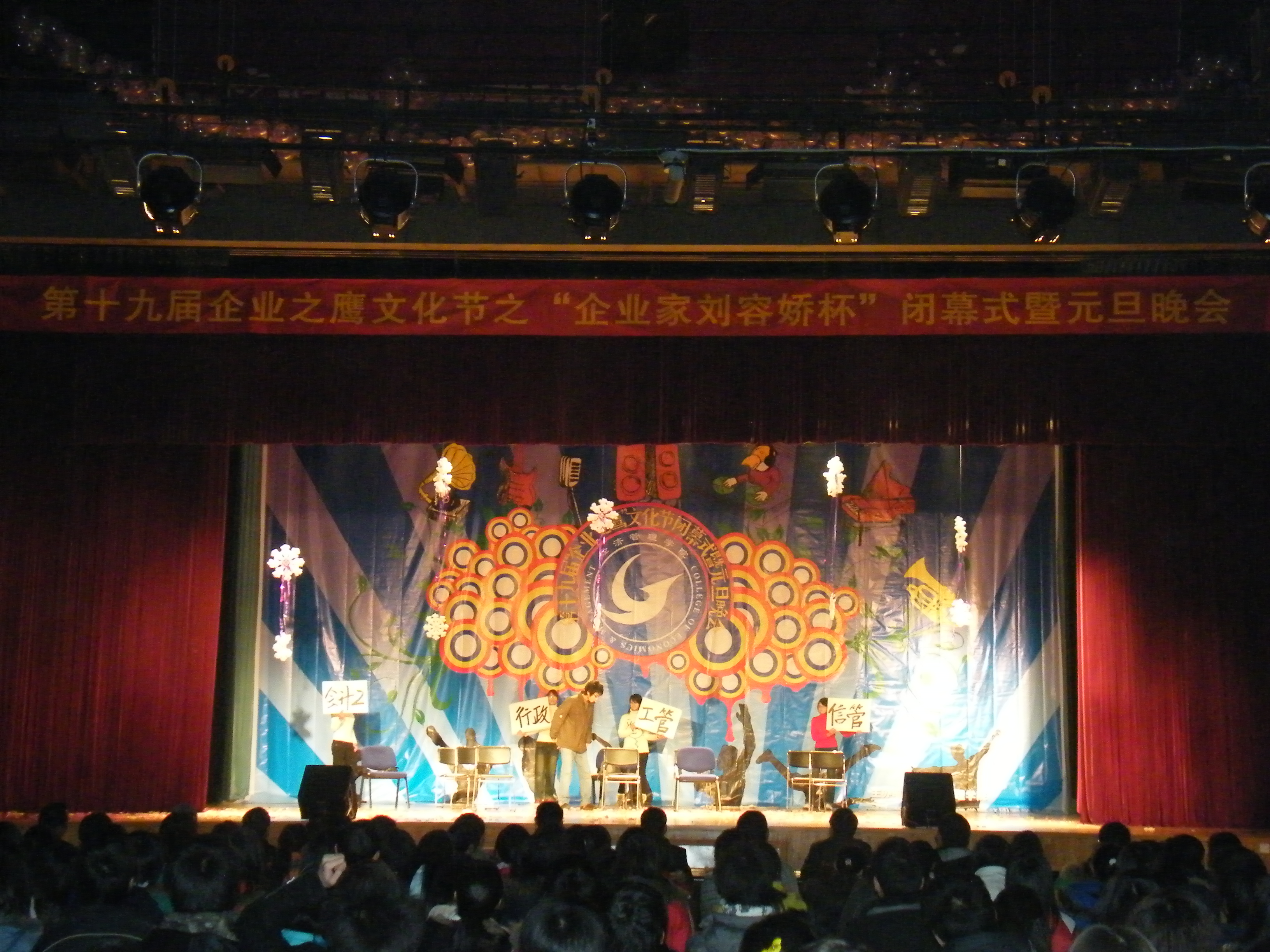 12月30日晚7:00,第十九届“企业之鹰”文化节之“企业家刘荣娇杯”闭幕式暨元旦晚会在大学生活动中心演播厅隆重举行。本届文化节由经济伟德国际1946源于英国主办。经济伟德国际1946源于英国院长夏火松、副院长胥朝阳、王珍义,分党委书记汪圣云、副书记李仁志,院办公室主任肖莉及部分教职员工出席了晚会。
