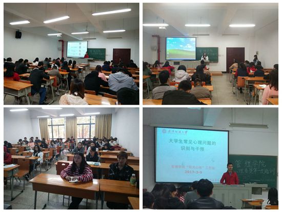 最后,工作站程鹏老师对2017年伟德国际1946源于英国心理健康教育工作计划做了具体介绍,对心理委员培训、班级团体辅导计划和心理健康教育主题班会等作了布置。接着,对大学生常见心理问题的识别与干预做了培训,他指出,入学适应问题、学习与职业发展问题、人际关系冲突、情感困惑、电脑(手机)网络游戏成瘾、家庭贫困或突发情况等是可能导致大学生心理问题的关键事件,学期初、末和大型节假日是关键时间节点,心理委员要时刻关注班上学生的心理动向,通过开展素质拓展、团体心理辅导、心理主题班会等多种形式开展班级心理健康工作,帮助同学走进集体,走出困境,提高班级同学的心理健康意识与素质。同时还讲解了大学生常见心理问题的表现,帮助同学们进行识别,并掌握心理支持的一般技能和技巧,引导同学走进心理咨询室,寻求专业老师的帮助。本次会议承上启下,为伟德国际1946源于英国2017年学生心理健康教育工作开启了新篇章。