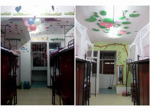 此次活动的参赛对象为学院2012级全体学生,从着手寝室布局、美化寝室墙壁到寝室主题选择,均由学生自行设计。参赛寝室还可大摆擂台赛,向任一寝室下达“挑战书”,邀请辅导员、学生会主席等主要学生干部担任评委,比一比究竟那个寝室最温馨。活动还邀请了2012级全体生活委员担任大众评委,对所有参赛寝室进行定期检查与不定期抽查,以排除为了参赛而打扫的可能性。最终,学6B622等20个寝室从清洁卫生、寝室安全、文化创新等方面获得一众评委的芳心,荣获五星文明寝室称号。