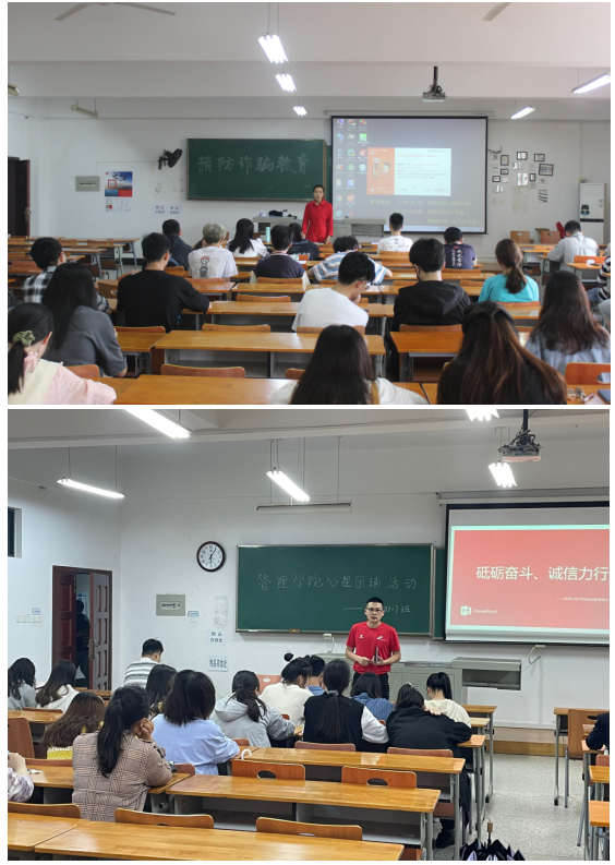 活动伊始,各年级辅导员围绕诚信及金融知识和国家助学贷款相关政策等内容进行讲解,全面解读了国家和学校对学生“奖、助、贷、勤、减、免”等资助政策,让同学们更加了解和明细国家资助政策,希望获得国家助学金的同学们能够深刻认识感恩、学会感恩、通过爱的传递来帮助别人。此外,各班级结合近期出现的网络诈骗,分别签订了《防诈骗安全告知书》,开展了防诈骗安全知识学习和测试,让同学们充分认识到现阶段电信网络诈骗的危害性,提醒同学们远离不良贷、套路贷,引导学生珍爱信用、谨慎借贷、理性消费,提高学生的征信意识、金融意识、风险意识、法律意识,树立正确的消费观、荣辱观、价值观。