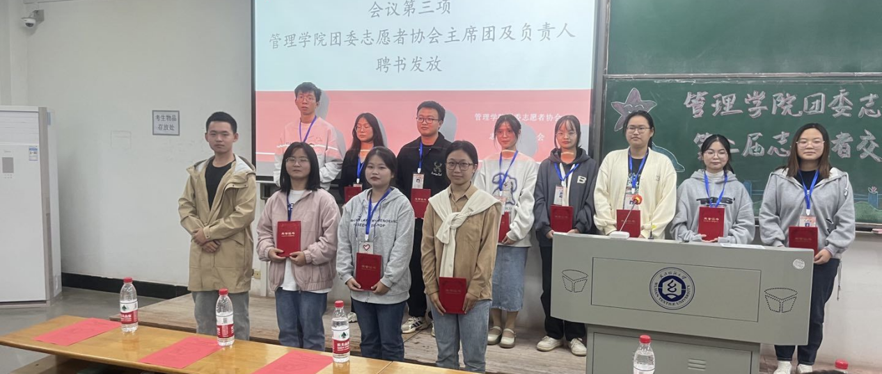 伟德国际1946源于英国团委副书记姚震寰为主席团和各部门负责人颁发聘书,激励着主席团成员和负责人们努力办好每一项志愿活动,通过一次次的志愿活动鼓励更多的人为志愿服务贡献青春力量。