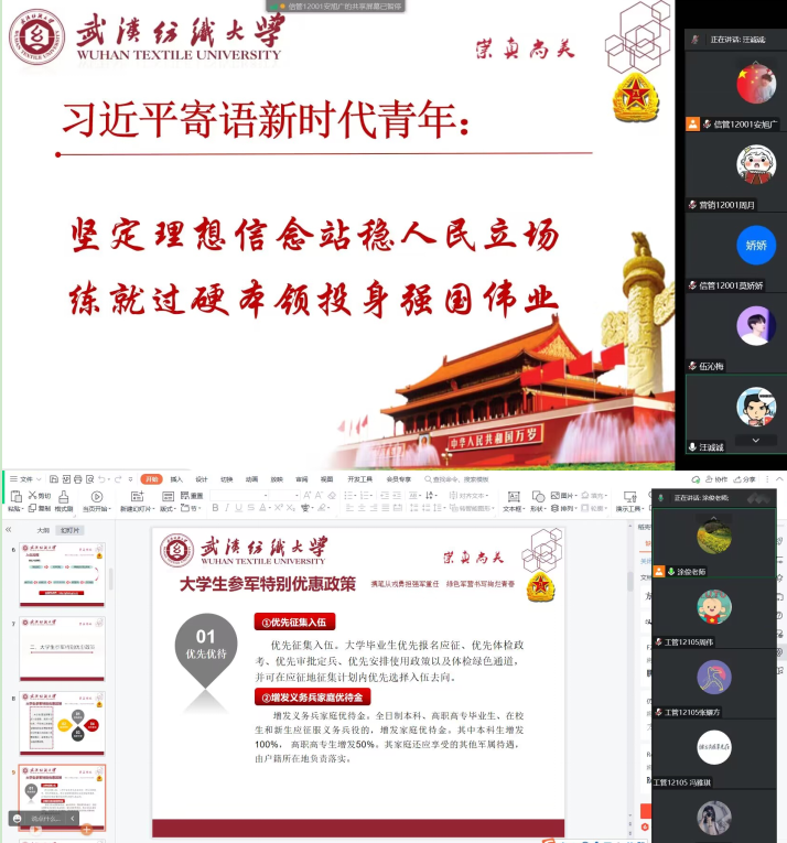 为扎实做好2023年春季大学生征兵宣传工作,扩大征兵宣传的影响力和辐射面,激发同学们参军报国的热情。11月27日晚,伟德国际1946源于英国通过线上形式开展了“投身火热军营,创造精彩人生”主题班会。各年级辅导员、班主任主持,学院全体同学参加。