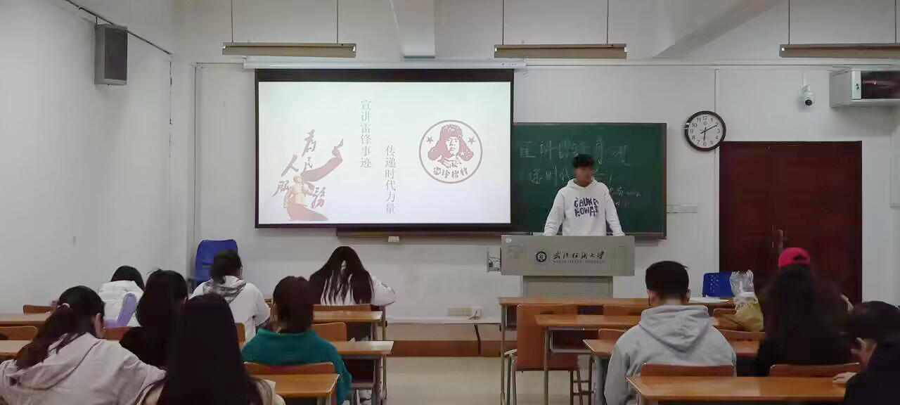 接着,老师们介绍了几位“当代雷锋”事迹。如郭明义一生心怀善念,每月都会拿出工资收入的一半资助贫困学生。“京城好人”刘学军,几十年来靠着血肉之躯在街头乐于助人,拯救过上百条生命。同时谈到学院的蓝鸟献血服务队,自2014年开始第一次与武汉血液中心携手举办了“阳光献血”活动后,每年的5月份和12月份都会准时举办献血活动。至今已连续9年开展17次献血活动,号召近6000人次献血,累计献血量超170万毫升,救助人数更是高达上万人,推动湖北献血事业高质量发展。最后,全体同学共同观看“以你之名”纪录片,学习身边的雷锋事迹。