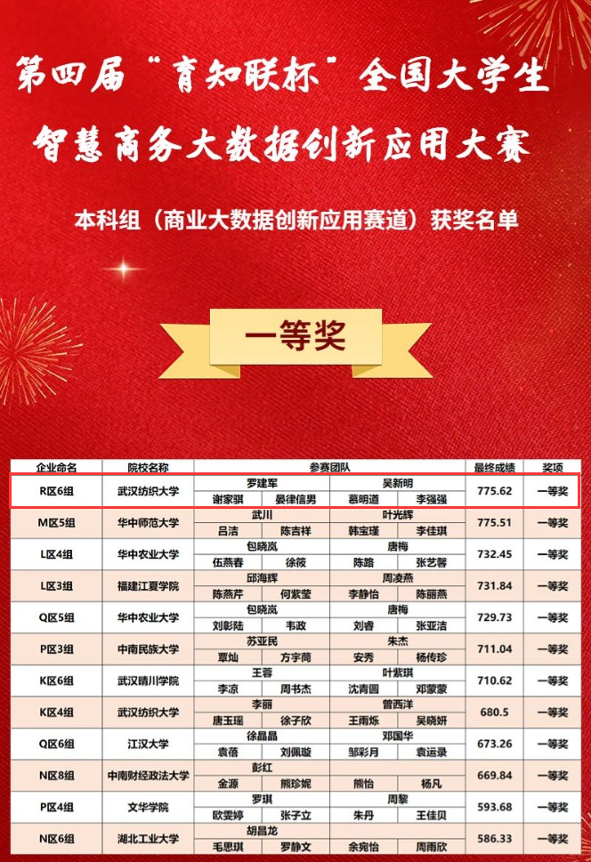 2023年4月8日,第四届“育知联杯”全国大学生智慧商务大数据创新应用大赛暨亚洲商学院数智精英挑战赛顺利举行。本次大赛由中国商业经济学会主办,中国MBA精英峰会协办,中南财经政法大学、常州信息职业技术学院承办,武汉育知联信息科技有限公司技术支持。大赛共有来自全国21个省市自治区、132所高校、339支队伍参加,参与人数达1624人。
