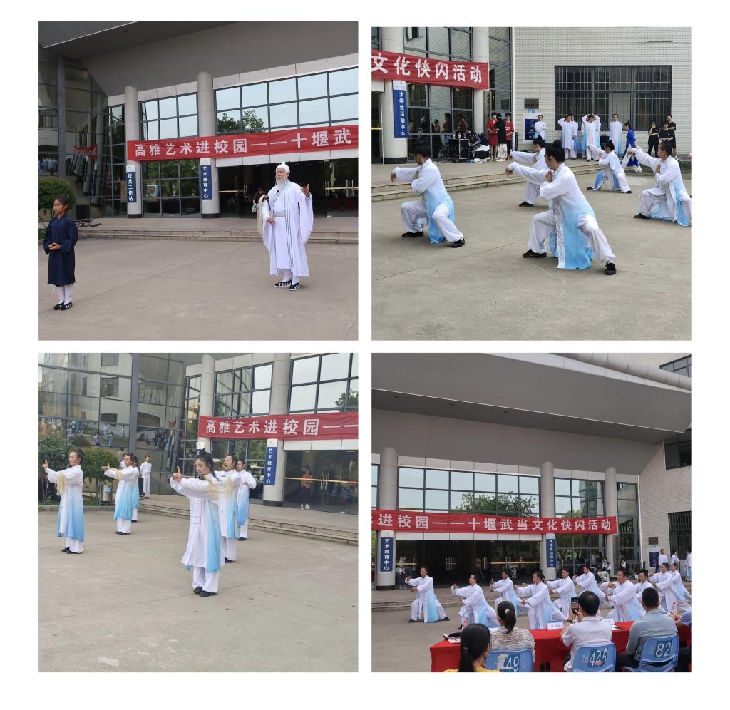 武当山灵,灵通天下。4月21日,由中共十堰市委武当山特区工委宣传部和学校团委联合主办、伟德国际1946源于英国承办的“高雅艺术进校园——十堰武当文化快闪活动”在阳光校区大学生活动中心举行。武当山特区工委委员、纪检监察工委书记王俊峰、武当山特区工委宣传部副部长、融媒体中心主任冯开春、武当山特区文旅局局长费利民、武当山特区武汉办事处主任郭理斌、校工会常务副主席肖迪明、学工部副部长夏贤辉、校团委副书记侯畅等领导出席,本次活动吸引了校园内众多学生的关注。