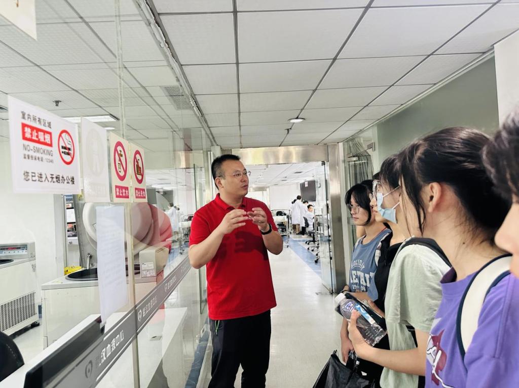 在血液中心工作人员的带领下,同学们还一起参观了血液中心成分科和供血科,实地了解血液制备、血液品种和血制品贮存等专业知识。参观中,顾军以实物展示的方式生动形象地讲解临床上常用的血制品:红细胞、血小板、血浆、冷沉淀等。同学们在学习到专业知识的同时,也进一步烙下了“捐献热血,传递生命”的印记。