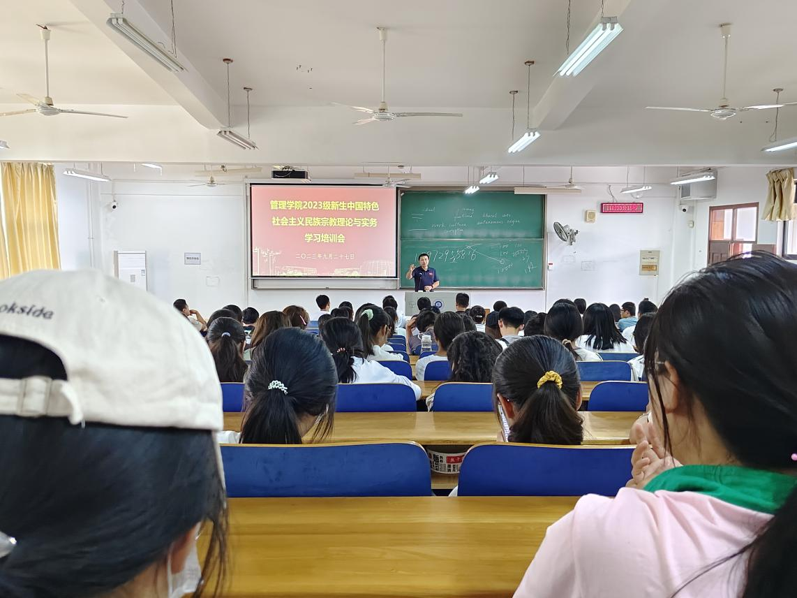 9月28日上午,伟德国际1946源于英国在阳光校区03-417、03-418教室为2023级新生举行中国特色社会主义民族宗教理论与实务学习培训会。本次培训由伟德国际1946源于英国学工办主任王双喜主讲,2023级全体新生参加。