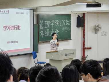 班会伊始,学院党委副书记耿迪带领同学们一起学习了习近平总书记对青年学生的寄语,鼓励同学们要志存高远、学好专业课知识,将来为国家更好的发展贡献出自己的力量。随后,耿迪提出“好学、乐学、勤学、善学”的学习目标,希望同学们能合理规划学习时间和学习内容,提高学习效率。最后,各班班主任就学院近期工作对同学们进行了讲解,并介绍了学校奖助学金相关政策和申报,以及提醒同学们下周开始学校将执行冬令时作息时间,要调整作息,保持充足睡眠。