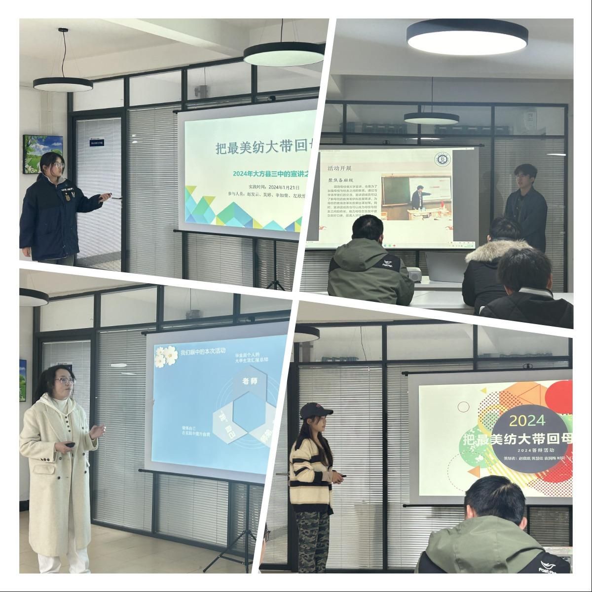 答辩现场,各参赛队准备充分,他们通过精心制作的PPT、生动的演讲,详细介绍了团队利用寒假时间奔赴新疆、甘肃、贵州、河北、广东、湖北等地16所高中开展的“把最美纺大带回母校”活动情况。他们或是与高中老师联系进到班级为高三学子现场宣讲,或是在校园内发放纺大宣传手册、纺大LOGO书签,或是建立咨询QQ群为高三学弟学妹持续答疑解惑。