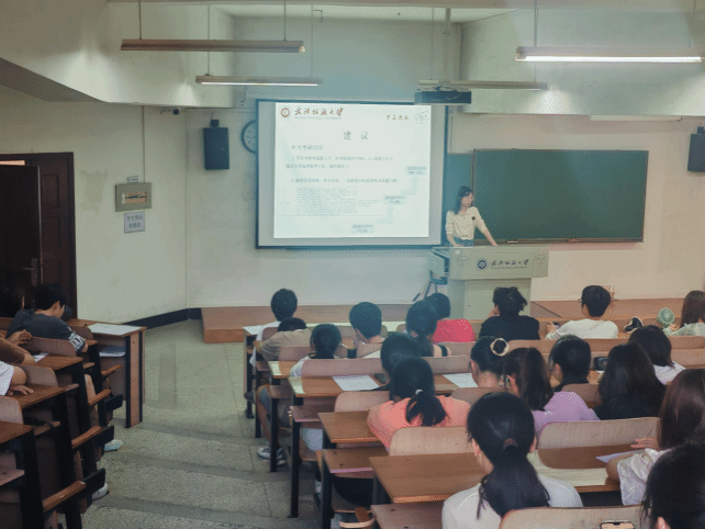 邓兰从2023-2024学年各班各科成绩均分、四六级通过率、学业预警率等方面对本年级学情学风进行深入总结分析,要求同学们通过此次学情分析会,及时反思自己,明确目标,为下一阶段做好规划。随后,邓兰详细介绍了大三下学期同学们会面临的几种选择,提醒同学们及时做出抉择,提前准备。深度剖析了学院近四年来本科毕业生的就业去向、行业分布以及地域分布等情况。邓兰希望同学们树立正确的择业观念,要对自己充满信心,鼓励符合条件的同学参军入伍,积极投身到祖国需要的行业领域当中。最后,邓兰组织同学们共同学习防范网络诈骗、宿舍用电安全等知识,提醒同学们注意自身人身财产安全。