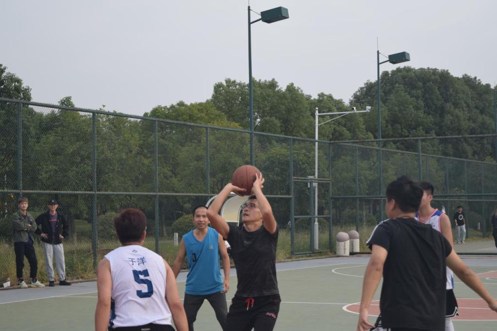 伴随着裁判哨声响起,比赛正式拉开了帷幕。教师代表队快速进入比赛状态,吴金红老师、马小刚老师与张朋龙老师凭借默契的挡拆配合率先上篮得分,与此同时,研究生代表队也不甘示弱,立马以快速反击追回两分。比赛开始就进入白热化状态。双方队伍你来我往,半场结束,老师代表队依据身体与体力优势取得比分领先。