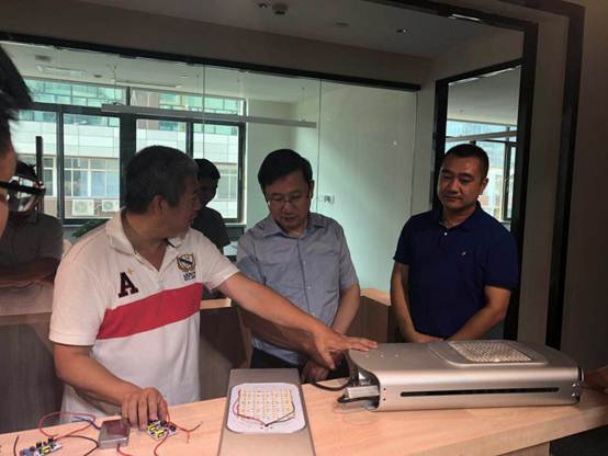 世鸿智汇科技联合创始人机制98级黄炯校友及其员工向彭校长介绍公司产品