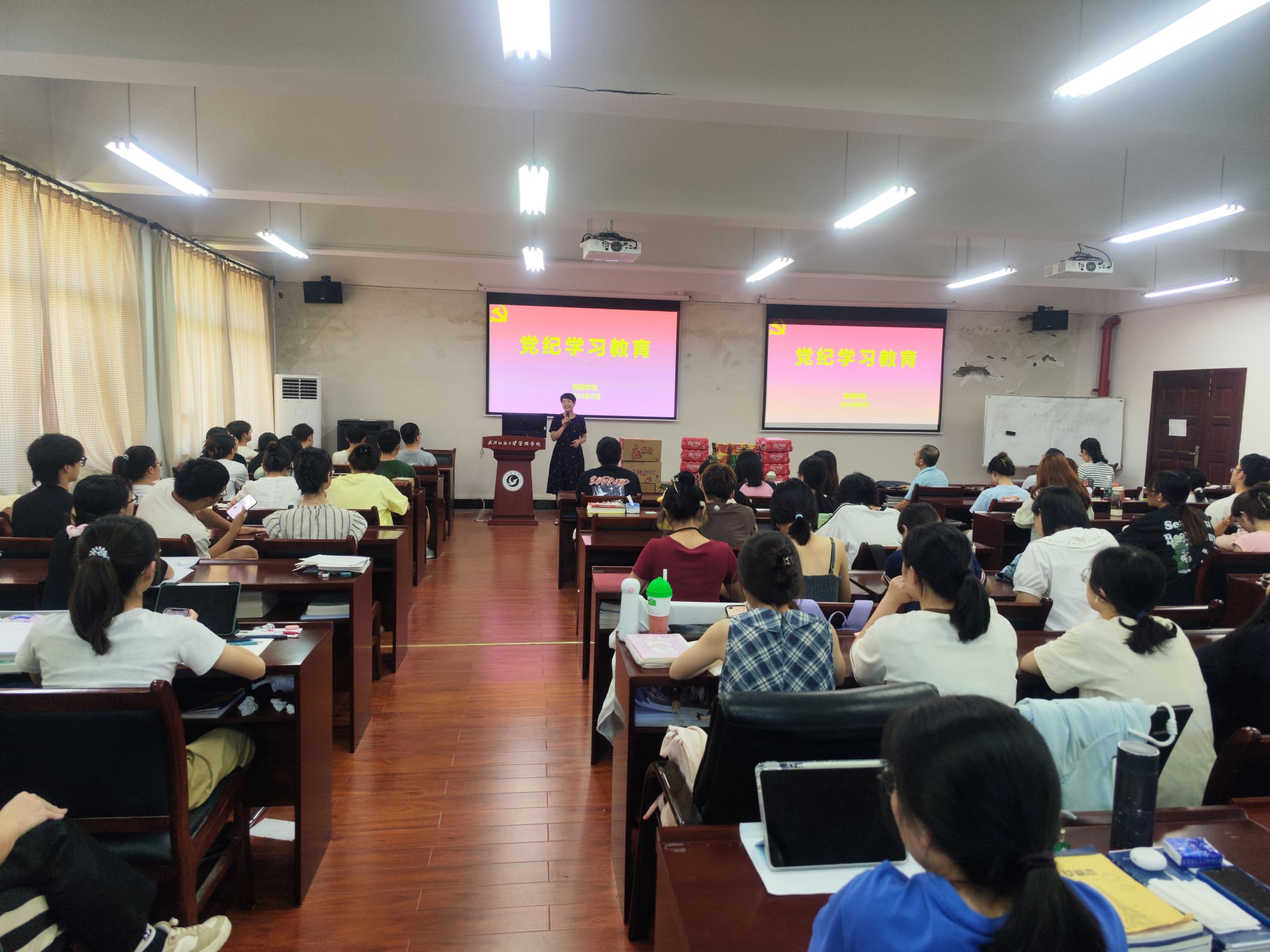 为深入学习贯彻习近平新时代中国特色社会主义思想,推动党纪学习教育走深走实,加强学生党员纪律教育,8月5日下午,伟德国际1946源于英国党委书记滕胜娟为学生党员讲授党纪学习教育专题党课,院长吴金红、副院长张飞、院党委副书记耿迪、辅导员牟迪出席,研究生、本科生党员和入党积极分子参加。
