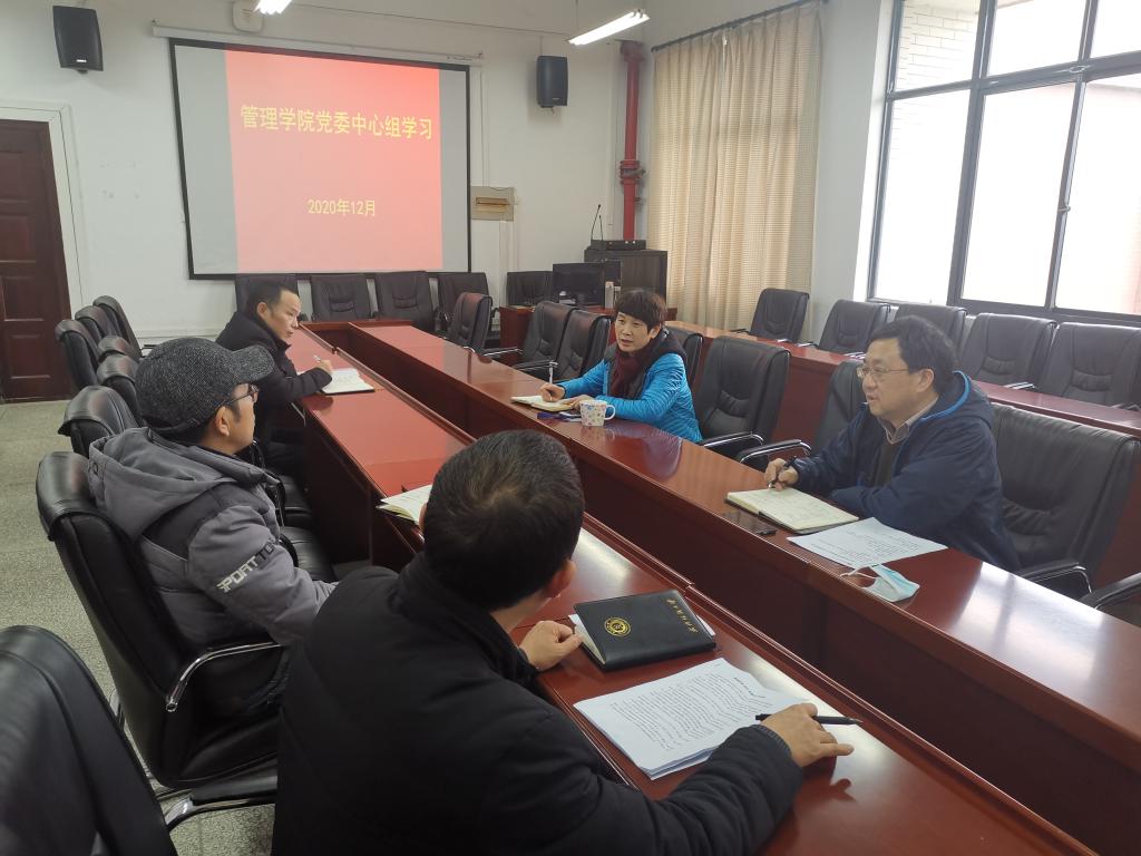 为深入学习贯彻党的十九届五中全会精神, 科学谋划学院“十四五”发展,12月3日下午,伟德国际1946源于英国党委中心组在阳光校区崇德楼536会议室举行2020年第8次集体学习。学院党委书记滕胜娟主持学习会,院长王济平等全体领导班子成员参加学习。