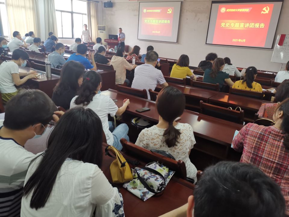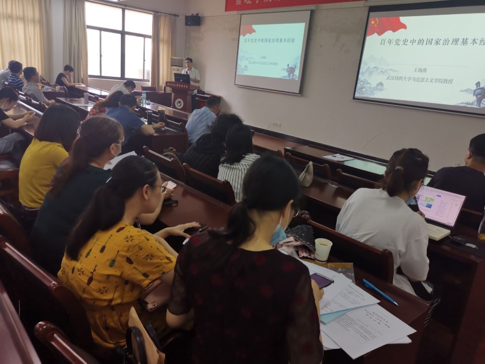6月10日下午,伟德国际1946源于英国在阳光校区崇德楼513学术报告厅举办党史专题宣讲报告会。学校党史专题宣讲团成员、马克思主义学院王海燕教授应邀以《百年党史中的国家治理基本经验》为题作专题报告。全体教职员工参会学习。