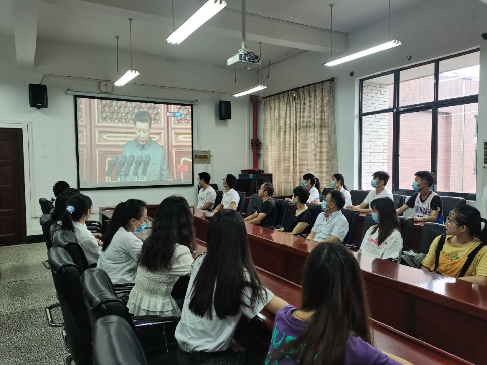同日,上午8时,滕胜娟、王济平、吴金红等学院领导,与本科生、研究生党员代表欢聚一堂,通过收看现场直播的方式,认真学习习近平总书记在庆祝中国共产党成立100周年大会上发表的重要讲话,共同庆祝党的百岁生日。