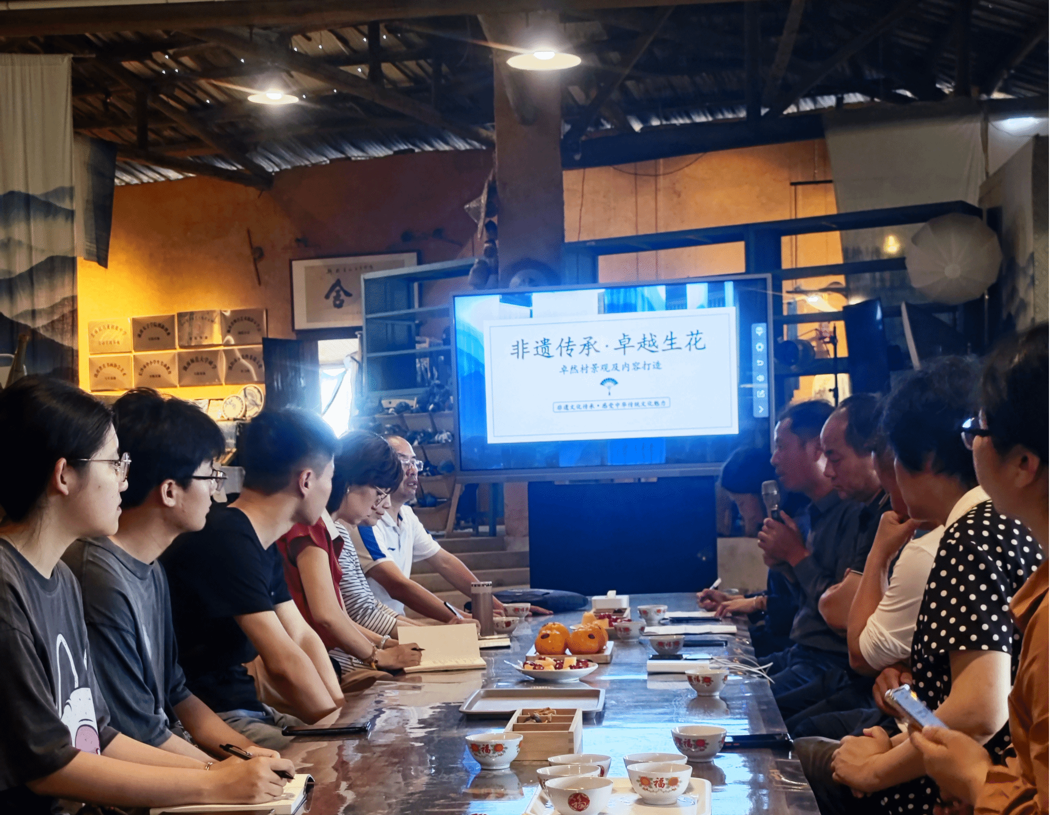 卓然村党总支书记汪新桥以“非遗传承 卓越生花”为题讲授党课,他介绍了卓然村的概况和历史文化,重点讲解了位于卓然村的浏阳市示范性非遗传习所原乡染坊,原乡染坊从成立到发展再到成熟,一直专注于手工织布与天然古法植物染技艺的传承与发扬,让传统非遗染织文化、服饰美学得到良好的传播,为广大爱好者和传承人提供了强大的创新学习、实践研发平台。