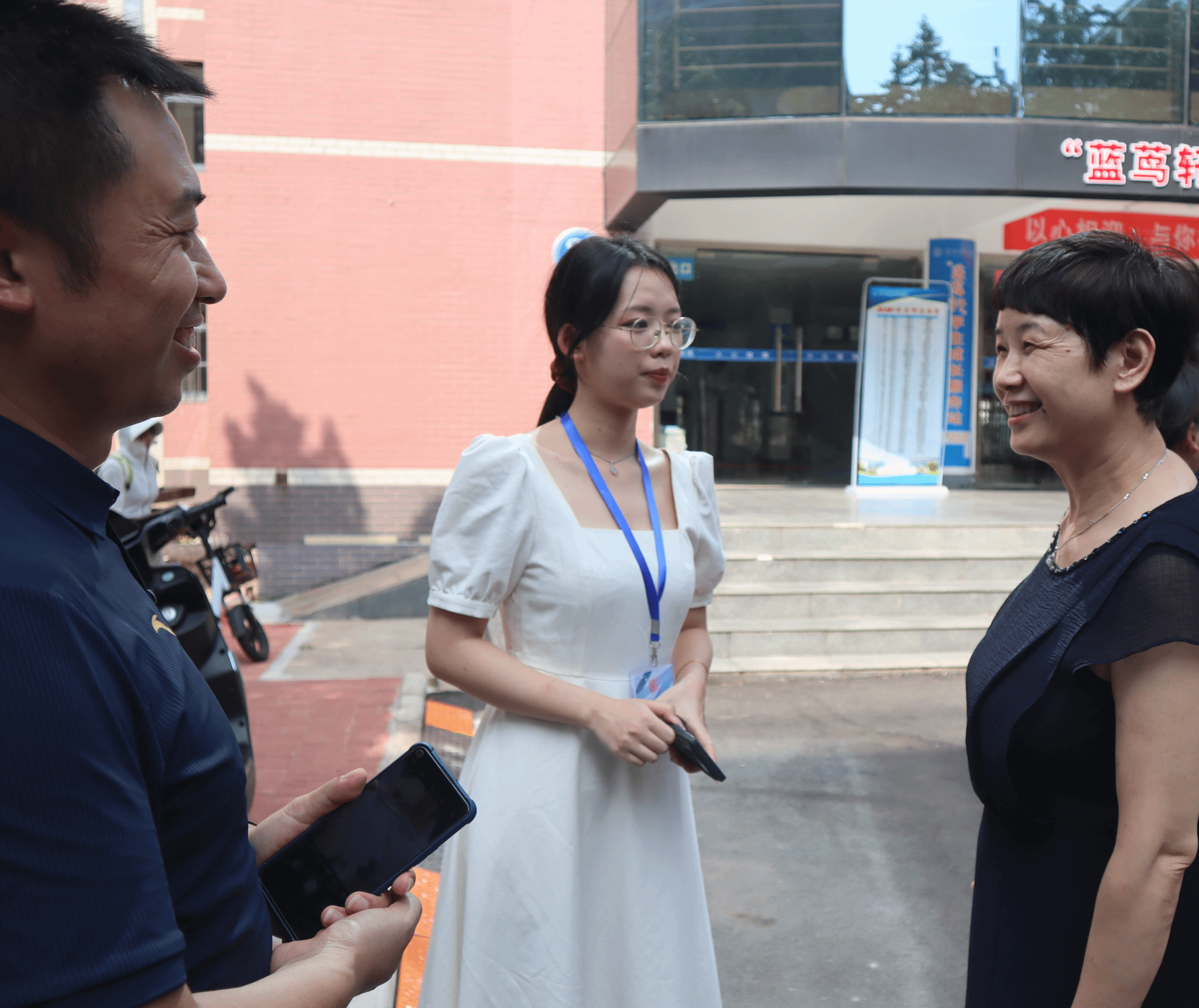学院党委书记滕胜娟、院长吴金红、党委副书记耿迪一行早早来到了迎新现场,询问新生报到情况,慰问现场志愿者,与报到新生展开亲切交流。