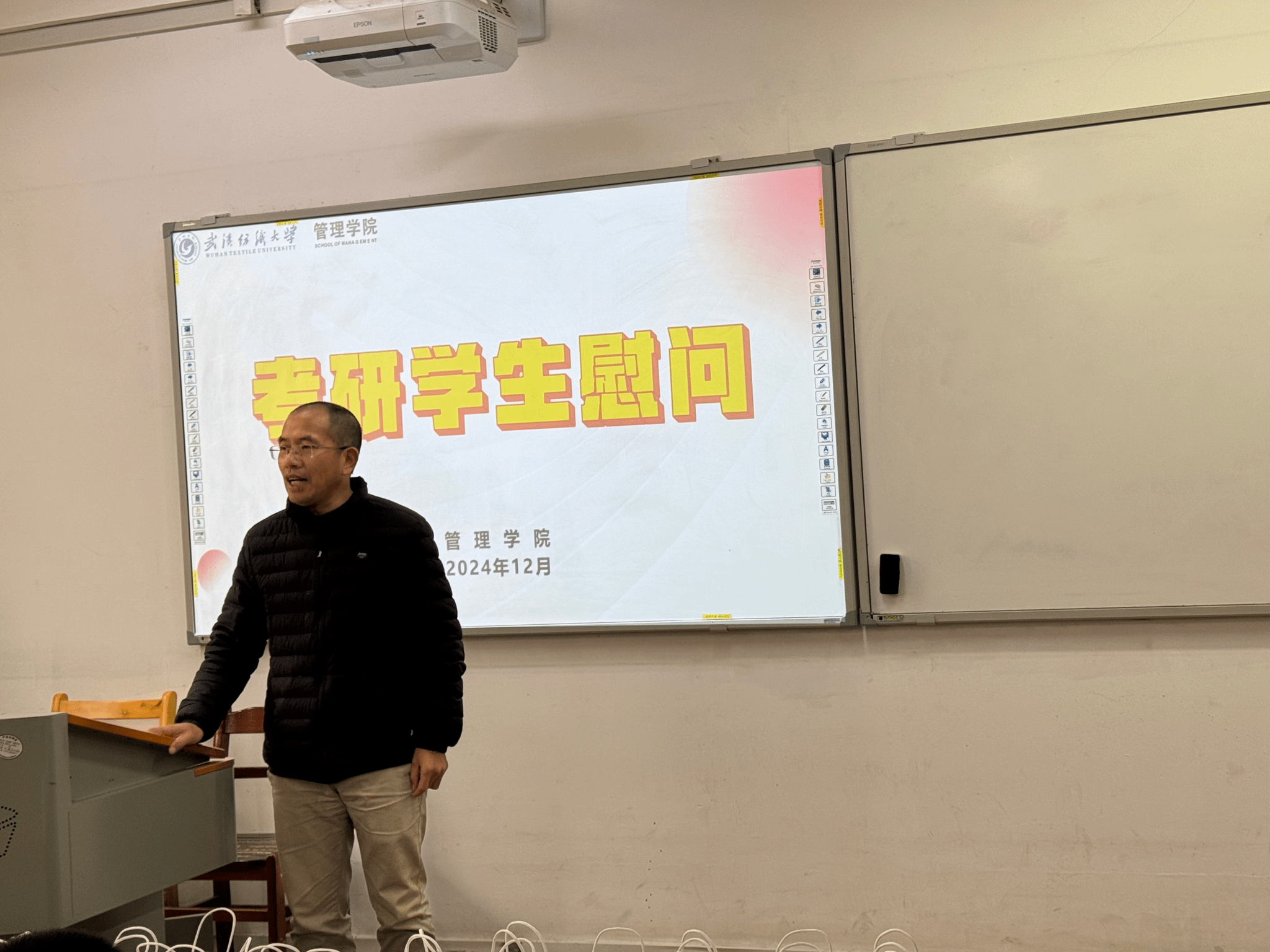 为帮助考研学子们缓解备考压力,鼓舞士气,坚定考研信心,12月5日下午3点半,伟德国际1946源于英国在3栋104教室举办了2024年考研慰问活动,学院党委书记赵立彬、院长吴金红、党委副书记耿迪、2021级辅导员邓兰、牟迪及全体2021级考研学生参加。