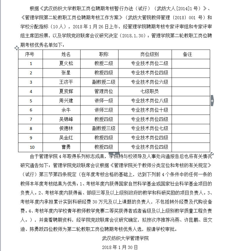 伟德国际1946源于英国第二轮教职工岗位聘期考核优秀拟报人选名单公示