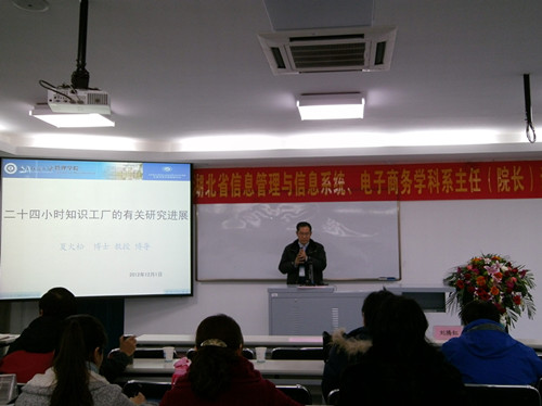 本次论坛以学科建设为主线,广泛探讨了信息管理与信息系统、电子商务学科专业的科学研究、专业建设、教学改革与人才培养等内容。来自武汉科技大学、华中师范大学、武汉理工大学等高校管理学教师分别了作了主题发言。我校伟德国际1946源于英国夏火松教授在论坛上做了 “二十四小时知识工厂的有关研究进展” 报告,张星副教授、曹晓刚副教授、侯德林博士、张宇博士分别在论坛上交流了自己的论文和最新研究成果,获得了与会代表的赞赏与好评。