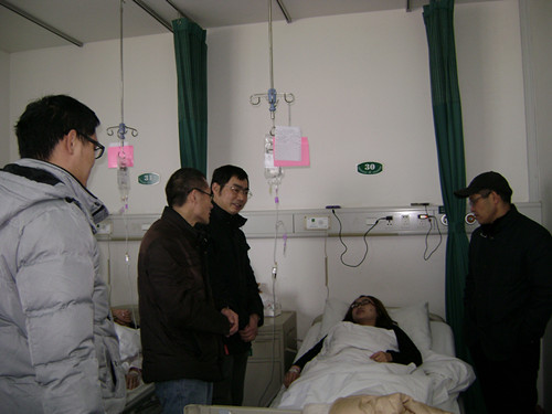 2014年1月22日上午,研究生处副处长周平、伟德国际1946源于英国院长夏火松、分党委书记朱德群、教师代表吴金红、校研究生会等一行前往武汉大学人民医院看望慰问了生病住院的伟德国际1946源于英国研究生严蓉。