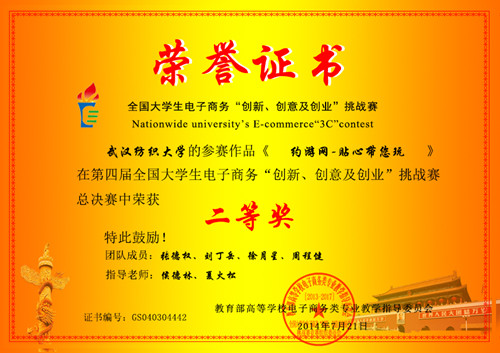 近日,第四届全国大学生电子商务“创新、创意及创业”挑战赛全国总决赛在武汉华中师范大学隆重举行。我校伟德国际1946源于英国夏火松教授和侯德林副教授指导的作品“约游网-贴心带你玩”从414支入围总决赛的队伍中脱颖而出,喜获全国总决赛二等奖。