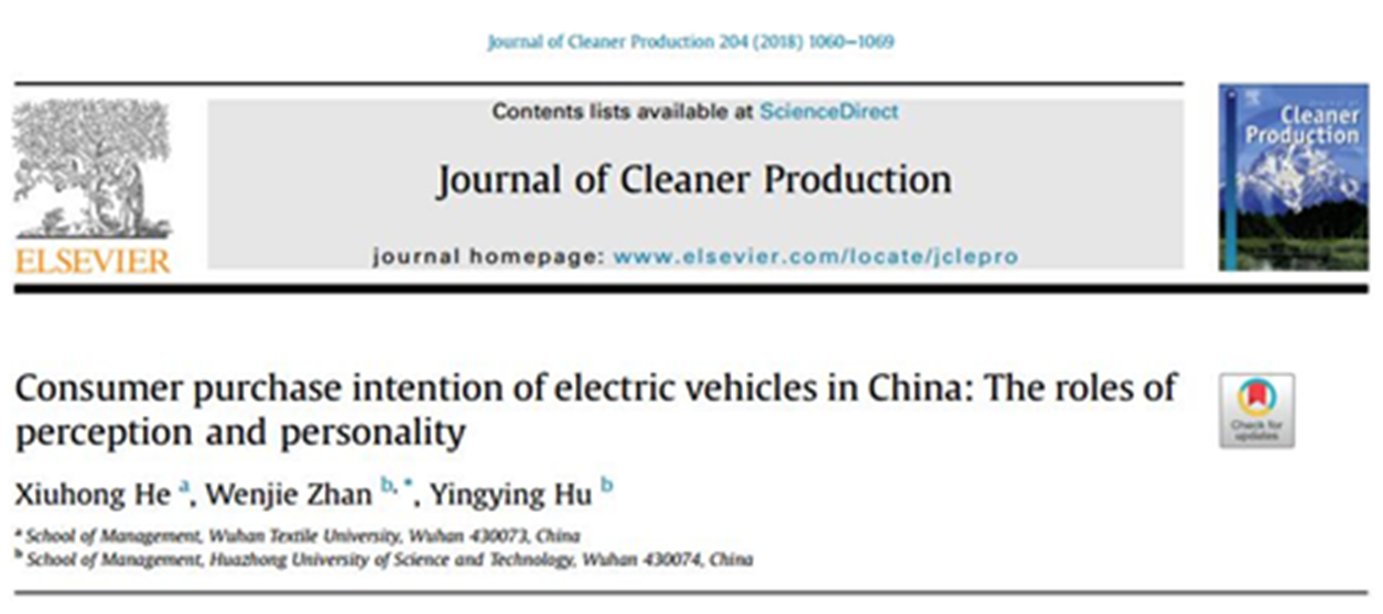 伟德国际1946源于英国新进博士何秀红在中科院SCI期刊分区( 2018年最新版本)1区《Journal of Cleaner Production》(If=5.651)期刊上发表论文 《Consumer purchase intention of electric vehicles in China: The roles of perception and personality》。
