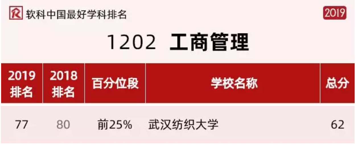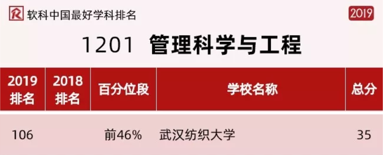 近日,2019软科中国最好学科排名正式发布,我校伟德国际1946源于英国2个学科上榜。其中,工商管理学科在157所上榜高校中位列第77,在湖北省属高校中位列第一,也是纺大首个进入前25%的学科;管理科学与工程学科在116所上榜高校中位列第106,入围全国排名前46%序列,在湖北省属高校中位列第二。