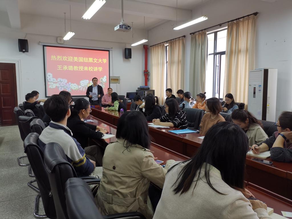 11月6日上午,美国纽黑文大学商学院营销学终身教授王承璐博士应邀来校,与伟德国际1946源于英国班子成员交流学科建设工作,为学院师生带来了一场精彩的学术辅导报告。报告会由伟德国际1946源于英国院长王济平主持。