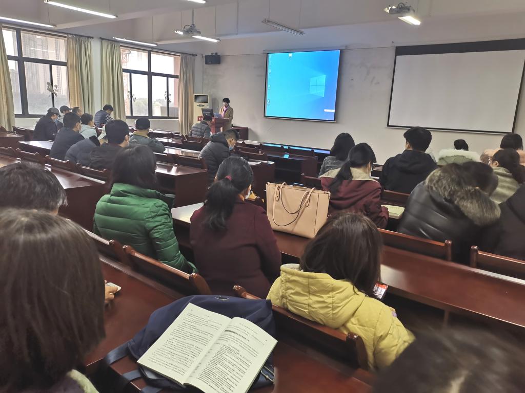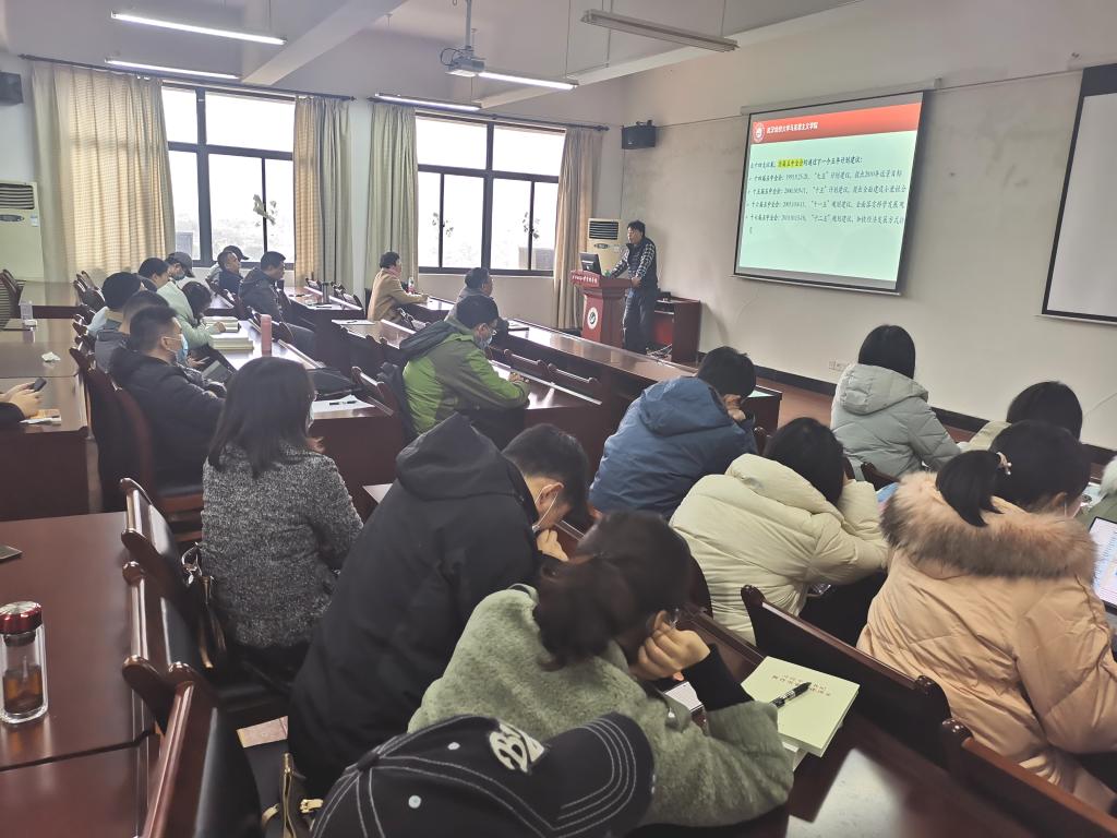 喻学林教授通过PPT形式,围绕党的十九届五中全会的意义、十九届五中全会概况与《建议》的基本框架、“十三五”成就与当前形势、2035年远景目标与“十四五”主要目标、“十四五”新发展理念引领高质量的重点任务、坚持系统观念认识和落实“1高3新13项行动”等内容和重大部署,结合学校教学、科研等工作实际,运用鲜活的事例,对全会精神进行了系统阐释和深入解读。