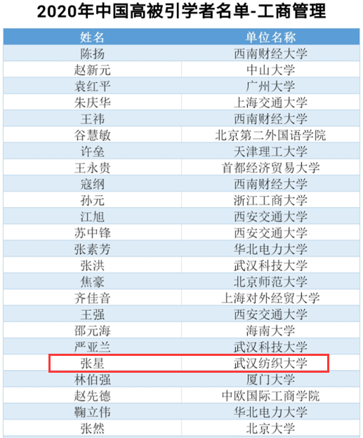 4月22日,全球性信息分析公司爱思唯尔(Elsevier)正式发布了2020年中国高被引学者(Highly Cited Chinese Researchers)榜单,我校伟德国际1946源于英国张星教授作为工商管理学科学者成功入选。据了解,在2020年管理学科大类中,共2所湖北省属高校3位学者入选。