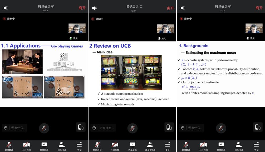 报告中,施教授介绍,如何估计多种决策随机方案中最优决策的绩效值一直是MS/OR和强化学习的重要问题。该问题在诸如马尔可夫决策过程(Fu,2017)和风险管理(Lesnevski等,2007)等领域都有非常广泛的应用。本文首次在机器学习Multiarmed bandit(MAB)的Upper confidence bound(UCB)框架下解决该问题。一般化原有的UCB的Exploration & Exploitation的平衡机制,给出了Exploration迭代的更快范围;在新的平衡机制下,证明了最优系统的仿真成本分配比例渐进收敛于1,而次优系统的渐进收敛于0;提出的大平均估计量(GA)的性质空白,给出了GA的强一致性、中心极限定理以及均方差;提出了一个自适应的最大分配比例估计量(LSA),并且也证明了同样的性质。