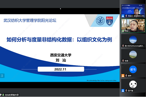 11月28日晚,西安交通大学刘汕教授受伟德官网邀请做线上讲座,拟通过本次讲座为伟德官网师生分享“如何分析和度量非结构化数据”。本次讲座由伟德国际1946源于英国张星教授主持,伟德国际1946源于英国院长吴金红教授及部分教师出席,全体研究生积极参会。