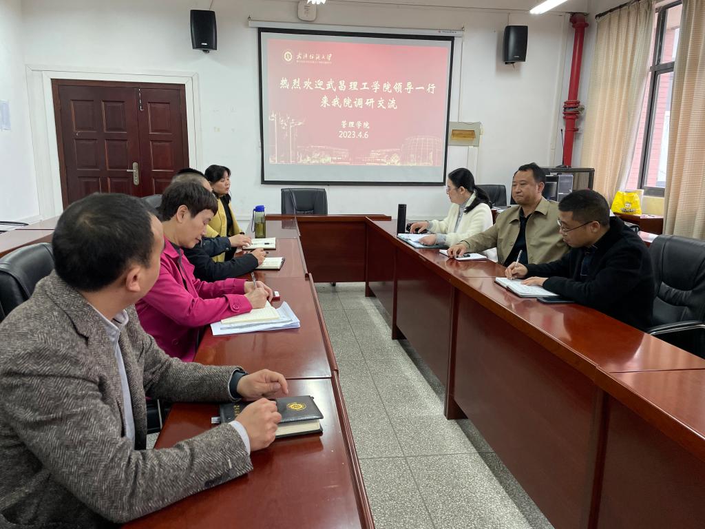 4月6日下午,武昌理工学院市场营销系主任李纵云等一行3人、武汉商学院工商伟德国际1946源于英国院长陈继元等一行4人先后到伟德官网开展调研交流工作。伟德官网党委书记滕胜娟、院长吴金红、副院长吴锦峰、张飞及各系系主任等先后出席调研交流活动。