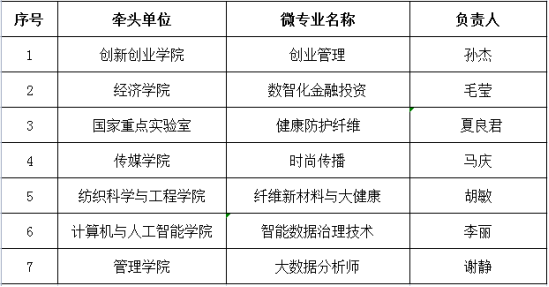 “微专业”为我校现有本科专业目录以外,立足经济社会发展对人才的需求,围绕某个特定专业领域、研究方向或者核心素养,提炼开设的一组核心课程。