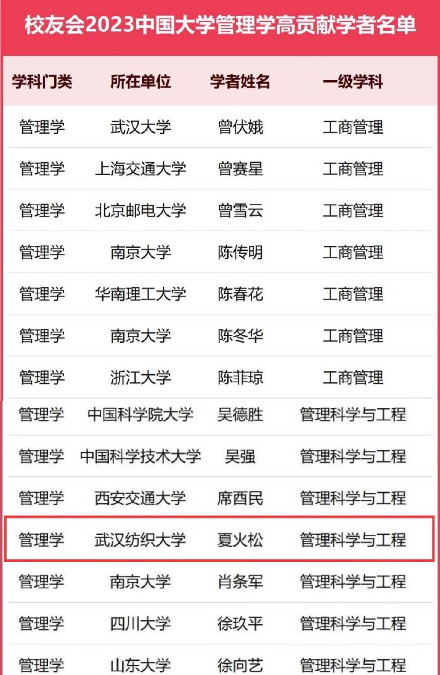 近日,全国第三方大学评价研究机构艾瑞深校友会网最新发布校友会2023中国高贡献学者完整名单,榜单显示,中国高校管理学门类共有437名杰出学者入选2023中国高贡献学者榜单,其中,伟德官网夏火松教授入选管理学高贡献学者。