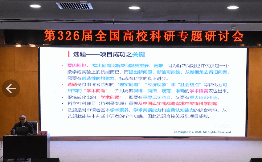 应教育部高校研修中心邀请,12月2-4日伟德国际1946源于英国阳光杰出学者曹勇教授赴长春财经学院出席“第326届全国高校科研专题研讨会”,受邀为主讲嘉宾做了“2024年度教育部人文社科基金项目选题技巧与申报书质量提升策略”的学术讲座。