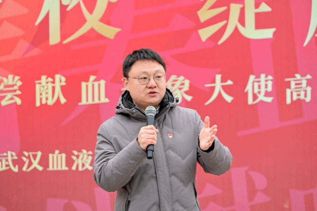 校团委李舒老师向全体师生发出无偿献血活动倡议,呼吁广大志愿者参与到无偿献血中来。