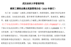 2023年,学校科研激励办法、人才职称评定办法都做了较大的调整,针对此变化,学院修订或出台了《伟德国际1946源于英国教职工绩效业绩点奖励管理办法》、《科研业绩点奖励办法》、《伟德国际1946源于英国年终个人考核评分细则》、《系主任工作年度考核办法的管理规定》、《伟德国际1946源于英国关于设立<高层次人才培育基金>的规定》、《伟德国际1946源于英国研究生开题管理办法》、《伟德国际1946源于英国硕士论文预审管理办法》等7项管理办法,坚持以制度管理人、以流程管事,着实夯实智慧管院的发展基座。