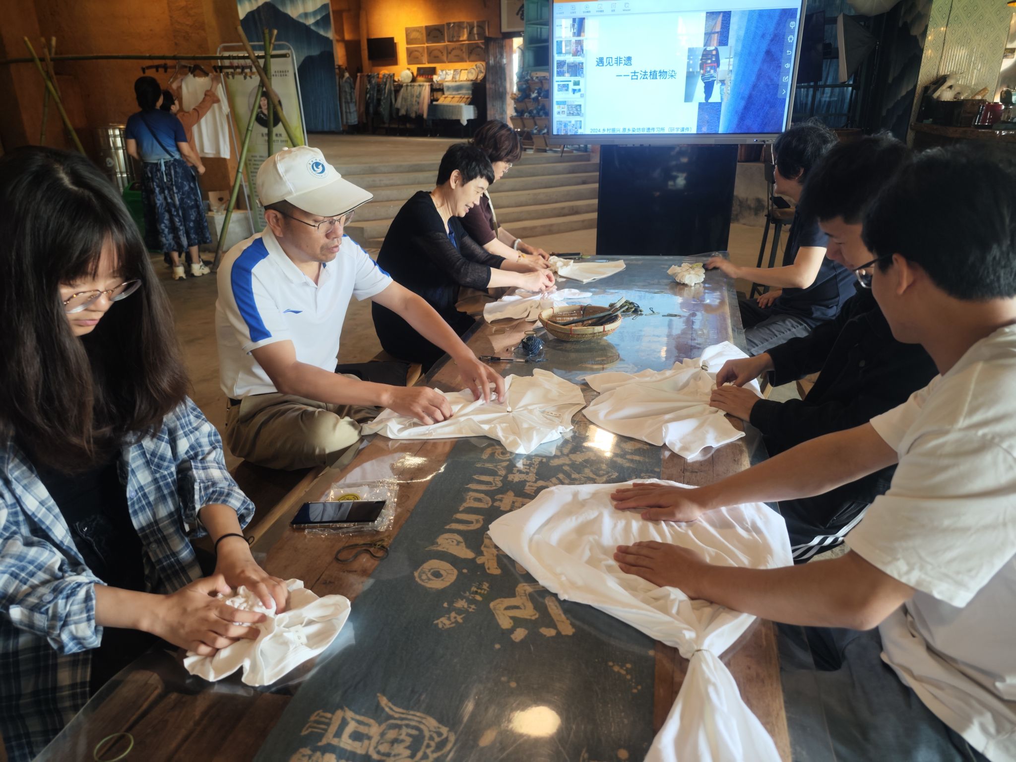 卓然村是一个拥有300多年织染文化的历史村落,依然保留着清晰可传的手工纺纱织布技艺。原乡染坊于2017年在卓然村创办,融入卓然村文化,一直专注于手工织布与天然古法植物染技艺的传承与发扬,已经成为浏阳市示范性非遗传习所。一行人参观了原乡染坊,深入了解了非遗文化的传承和发展,亲身接触到手工织布和古法印染。在交流会上,双方就原乡染坊的品牌建设、运营、推广等方面进行了研讨,伟德官网针对其中存在的一些问题提出了建设性意见。随后,成员们学习了植物染的扎染技术,并亲自动手进行了实践,染出了一件件独特的衣服,在实践中感受到古法植物染的魅力。