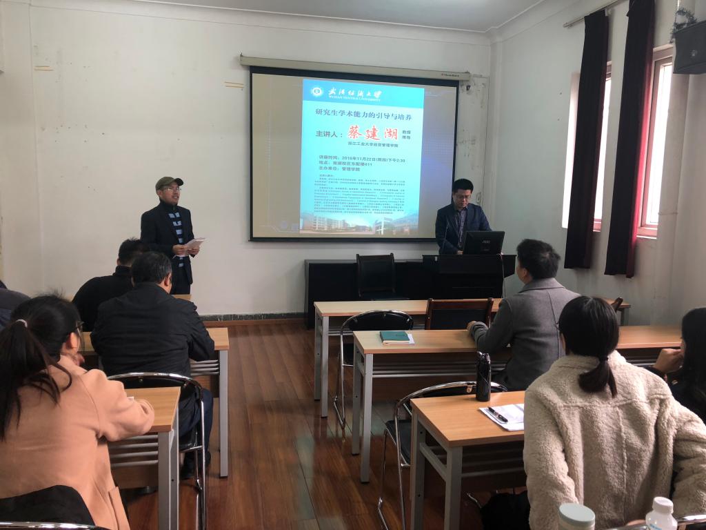 11月22下午,浙江工业大学博士生导师蔡建湖教授应邀来访,发表题为“研究生学术能力的引导与培养”的学术报告。伟德国际1946源于英国副院长吴金红主持了此次讲座。
